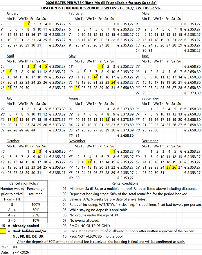 1 double bed 160 x 200 cm (Option to add a cot 60 x 120 cm)
